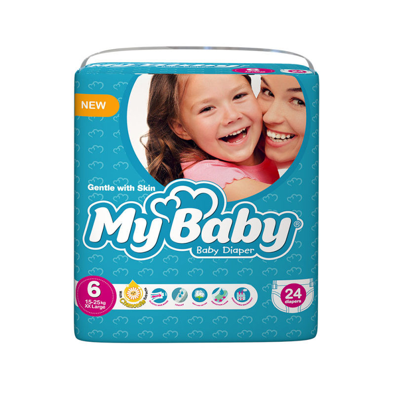 پوشک مای بیبی مدل سری مهربان با پوست سایز : سایز شش اندازه : خیلی بزرگ نوع پوشک : چسبی ویژگی پوشک کودک و نوزاد : لایه رویی نرم و لطیف، چسبهای قابل تنظیم و محکم، نوارهای کناری کشسان، کش 360 درجه، نازک، لایه بیرونی تنفسی، قدرت جذب بالا ح
